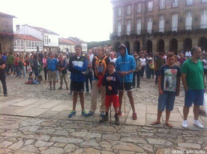 "Queríamos llegar ayer a Santiago para ver los fuegos y a las 9 nos enteramos de lo ocurrido. Hoy no podíamos no estar aquí. Me han enviado un mensaje desde Canarias para que guardáramos el minuto de silencio", explica.