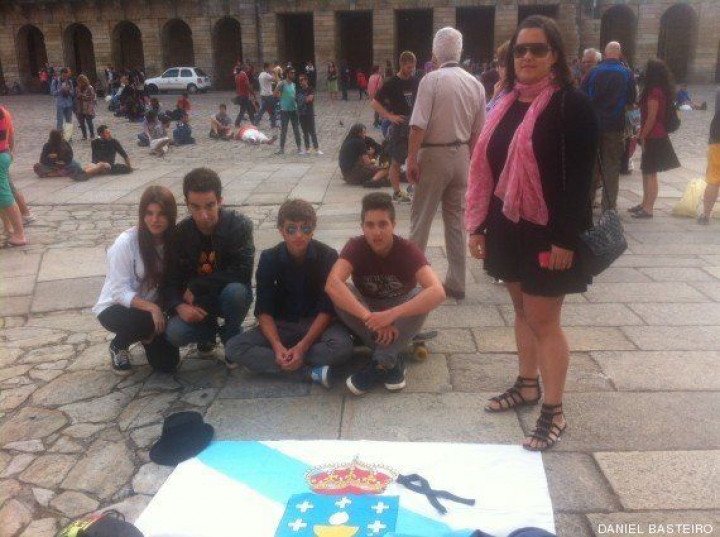 Cerca se encuentran cinco adolescentes junto a una bandera de Galicia con un crespón negro. Cenaban en un restaurante de lujo al lado de la catedral cuando se produjo el accidente. Entre los asistentes a la cena estaba el alcalde de Santiago, Ángel Currás, que "salió pitando nada más enterarse de lo sucedido". Los jóvenes corrieron después a donar sangre.