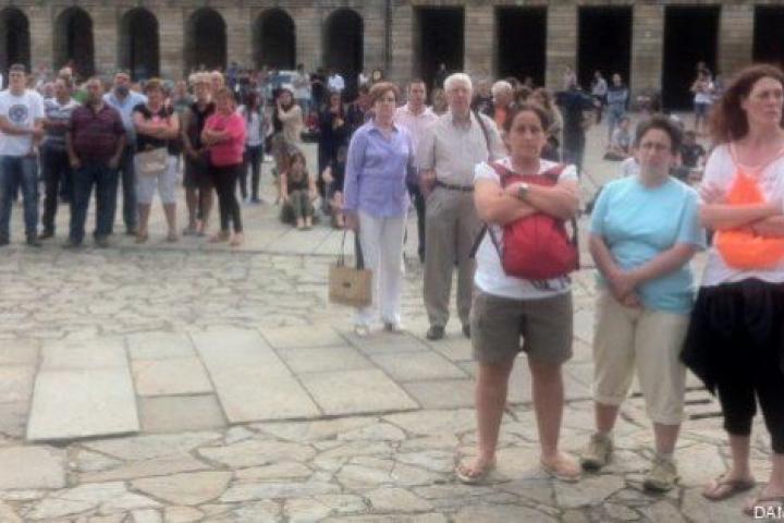 Unas 400 personas se han concentrado en la plaza del Obradoiro, en Santiago de Compostela, para guardar un minuto de silencio en memoria de las víctimas del accidente de tren que ya se ha cobrado la vida de al menos 80 personas.