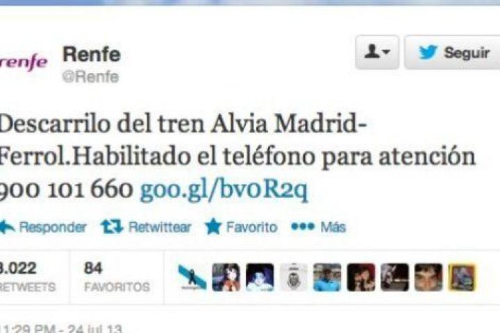 Después, sin embargo, Renfe sí ha reaccionado. Ha pedido perdón por diversas vías y ha colgado en su web un crespón negro y un comunicado en el que se lee: "Renfe y todos sus trabajadores desean expresar a los familiares y amigos de las víctimas su profundo dolor, así como manifestarles su apoyo y solidaridad".