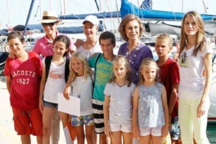 La Reina Sofía, la Princesa de Asturias y la infanta Elena han reunido este viernes a los ocho nietos de los Reyes con ocasión de la entrega de diplomas de la Escuela de Vela de Calanova, en Mallorca, donde han seguido el curso de este año los dos hijos de doña Elena y los cuatro de la infanta Cristina. Juntos han tomado esta foto de familia
