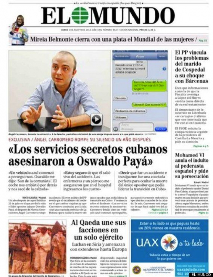 Ángel Carromero, entrevista en 'El Mundo': 'A Oswaldo Payá lo asesinaron'