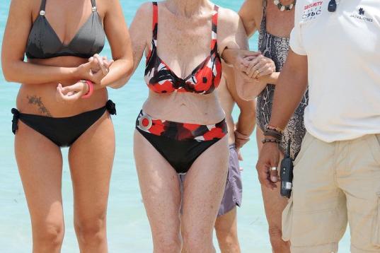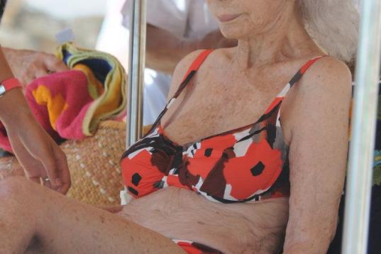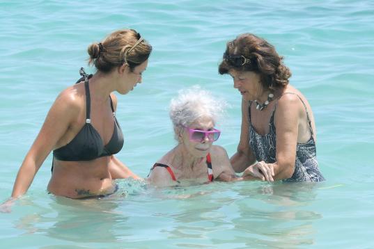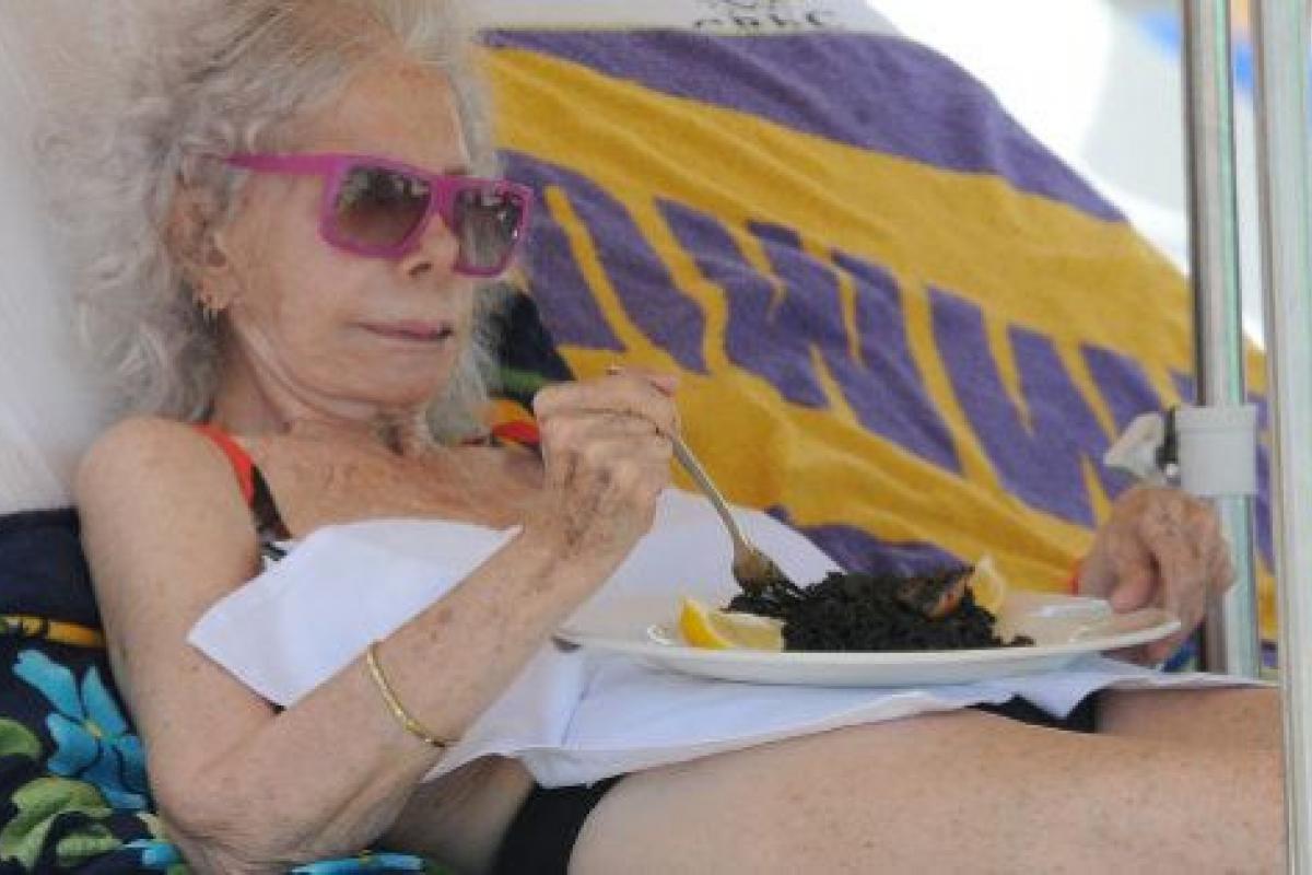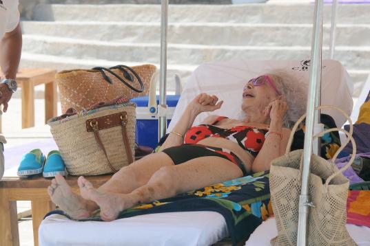 La Duquesa de Alba, que ha demostrado en infinitas ocasiones que cualquier cosa que se diga de ella le importa un pimiento, siempre va en bikini a la playa, se da sus baños (sin mojarse el pelo), se permite algún capricho dulce y se pasa el rato a la sombra en una tumbona. La Duquesa, como una reina, estos días en Ibiza en compañía de amigas. En este día de playa no estaba acompañada por su marido.