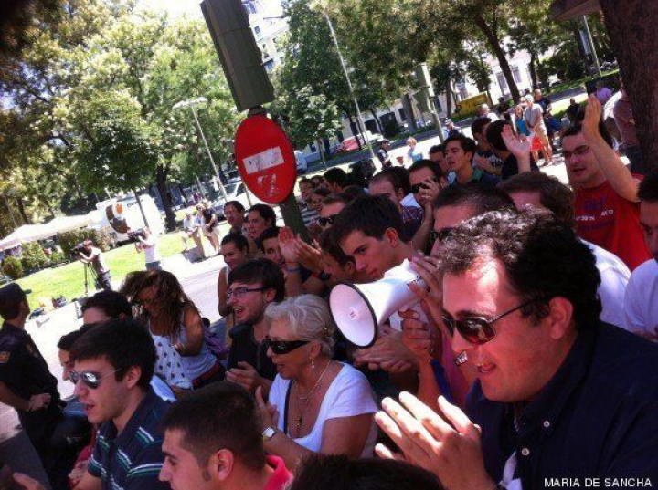 Ángel Córdoba, del grupo de mayores del 15M, sólo los acusa de estar organizados. "Se han abierto camino hasta la valla, y cuando ha pasado el coche de Cospedal ya sabían que venía, estaban avisados, y han empezado a aplaudir".