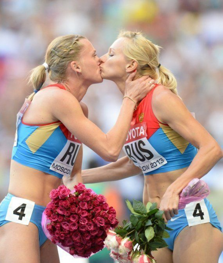 Beso solidario en el pódium: Kseniya Ryzhova y Tatyana Firova se besan en plena polémica antigay
