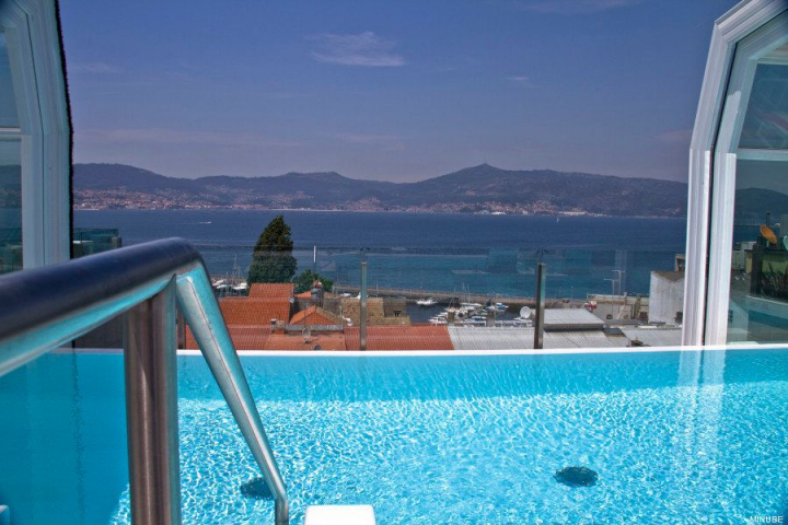 La piscina del Nagari de Pontevedra tiene vistas a la ría de Vigo y a toda la ciudad. Con esa frase se podría resumir lo fascinante de este hotel y su espectacular piscina. Además, todo el alojamiento es muy acogedor. Como dice David Esteban: “Las instalaciones son geniales, además el hotel de mucha sensación de armonía. Mezcla una decoración moderna que ha sabido fusionar lo étnico y lo oriental, haciendo del lugar un sitio atractivo y muy zen.”