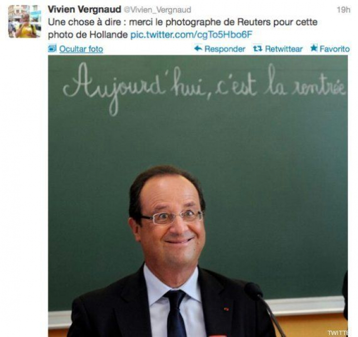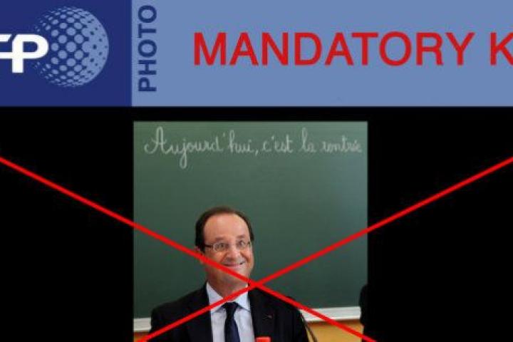 Dos de las principales agencias de fotografía para medios de comunicación, AFP y Reuters, han anulado una de las imágenes de François Hollande tomadas con motivo del inicio del nuevo curso escolar en Francia. En la foto Hollande no es que saliera muy favorecido. Debajo de una pizarra en la que se leía "Hoy es la vuelta al cole", el presidente francés aparecía con una mueca que convertía su cara en un chiste.