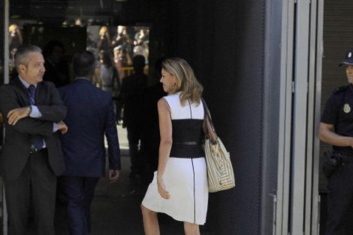 La secretaria general dejó claro ante el magistrado que no estuvo en la reunión en la que se pactó la salida del extesorero Luis Bárcenas. La 'número dos' de los populares negó cualquier responsabilidad en una supuesta contabilidad B y apuntó al presidente del partido, Mariano Rajoy, y al vicesecretario Javier Arenas como los autores de las condiciones de la indemnización del que fuera guardián de las finanzas de Génova.