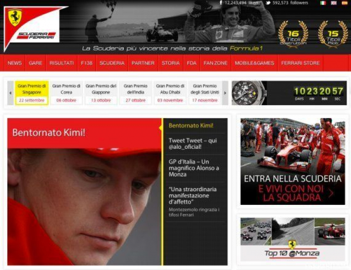 Sale Massa, entra Raikkonen. Ferrari ha despachado en apenas unas horas su pareja de pilotos para la próxima temporada con la marcha del brasileño Felipe Massa, quien ayer anunció su adiós, y con el fichaje por dos años del finlandés de Lotus, Kimi Raikkonen, quien ya pilotó para la escudería italiana con la que ganó el título en 2007.
