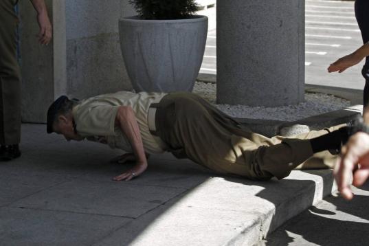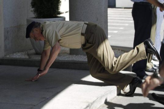 El rey se vuelve a tropezar. Esta vez, Juan Carlos estuvo a punto de caerse en un acto con generales de División del Ejército a los que recibió en Zarzuela. Tras saludarles, fue a posar en la foto de familia pero, al darse la vuelta, perdió el equilibrio. No cayó gracias a que los militares que lo flanqueaban le agarraron por los brazos, sosteniéndole.