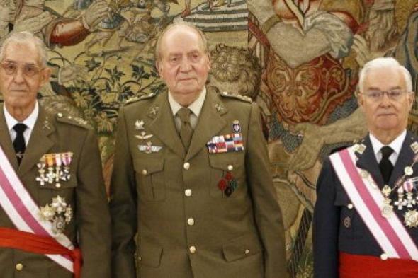 El rey se vuelve a tropezar. Esta vez, Juan Carlos estuvo a punto de caerse en un acto con generales de División del Ejército a los que recibió en Zarzuela. Tras saludarles, fue a posar en la foto de familia pero, al darse la vuelta, perdió el equilibrio. No cayó gracias a que los militares que lo flanqueaban le agarraron por los brazos, sosteniéndole.