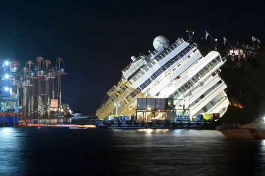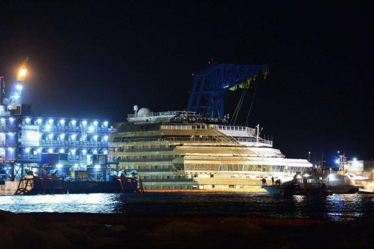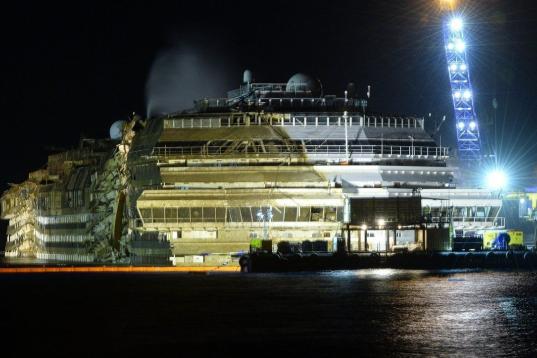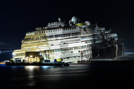 Enderezado el Costa Concordia tras casi un día de trabajos de reflote (FOTOS)