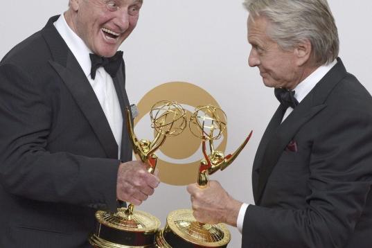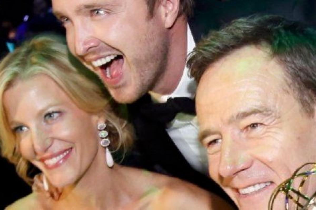 Cranston aseguró que la victoria como mejor drama era "la culminación de todo" y una gran forma para despedir la serie que termina su emisión este mes. También se llevó premio su esposa en la ficción, Anna Gunn. "Lo que yo quería es lo que hemos conseguido", afirmó Cranston, que aquí posa mientras le hace un "photobomb" de premio su compañero de fatigas Aaron Paul.