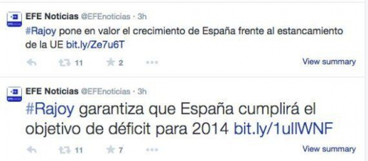 Sin embargo, en lugar de utilizar la etiqueta "Rajoy", usada habitualmente por esta agencia en su cuenta, la que aparecía era #RajoyMariquita.