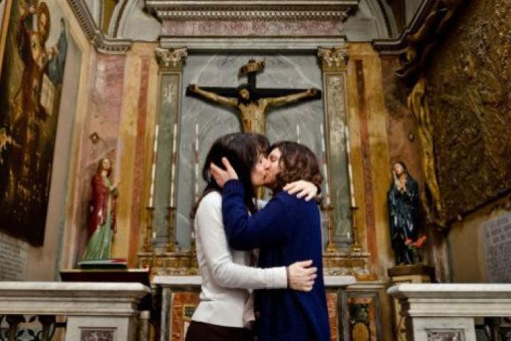Orquín, que vive en Roma, explica que con su obra quiso reflejar "un beso delante de dios". "Quedé con amigos en iglesias poco transitadas o vacías e hice las fotos cuando nadie miraba. Yo tampoco soy fotógrafo, así que no tienen gran calidad, pero lo que tiene valor de las imágenes es el gesto", explica.