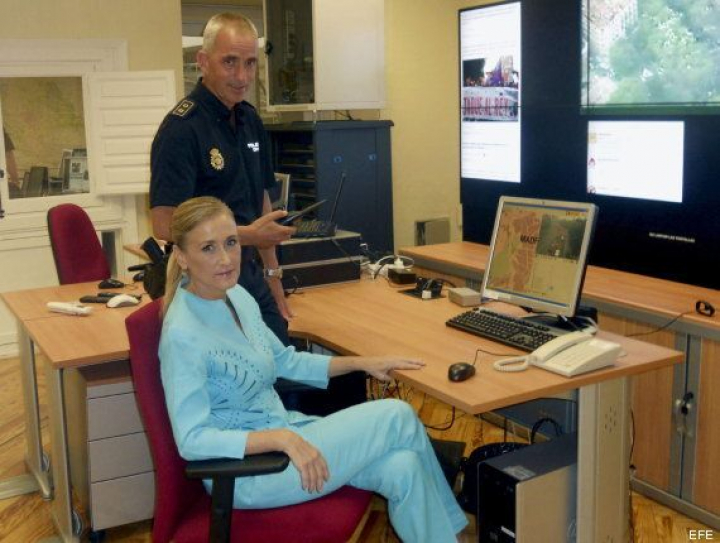 Cifuentes reaparece tras su accidente para vigilar el dispositivo policial del 'Jaque al rey'