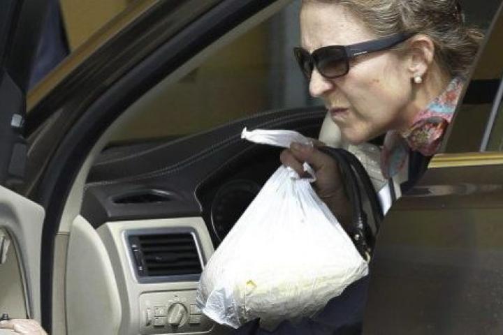 Doña Elena, que ha llegado al hospital tras una visita a Badajoz, ha acudido al volante de su automóvil y ha llamado la atención de los informadores gráficos el hecho de que, al bajarse del vehículo, llevara una bolsa de plástico con un melón, destinado previsiblemente a don Juan Carlos.