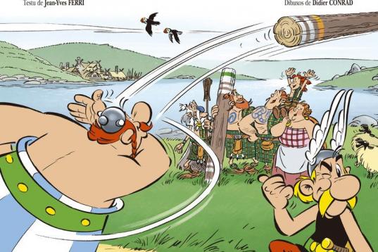 Cuatro nombres aparecen en la portada de Astérix y los pictos (Astérix chez les Pictes, en su versión original), con este pueblo de la antigua Escocia como invitado y, cuyo nombre, otorgado por los romanos, "significa literalmente 'los hombres pintados' ”, según explica la editorial. En la parte superior de la cubierta aparecen sus míticos creadores, René Goscinny (fallecido a finales de los 70) y Albert Uderzo, quien ha dado su bendición y apoyo a este nuevo álbum.