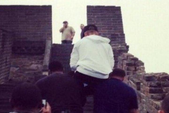 Justin Bieber, en la Gran Muralla china a hombros de sus guardaespaldas (TUITS)