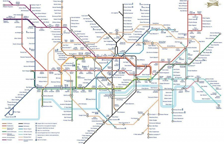 ¿Se imaginan pasar de la estación David Beckham a la Diego Armando Maradona pasando por la Michel Platini? No ocurrirá nunca, pero el Metro de Londres ha ideado un mapa con estaciones con nombres de los mejores futbolistas de la historia mezclados con jugadores de equipos ingleses.