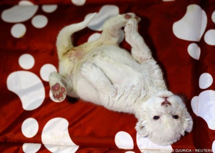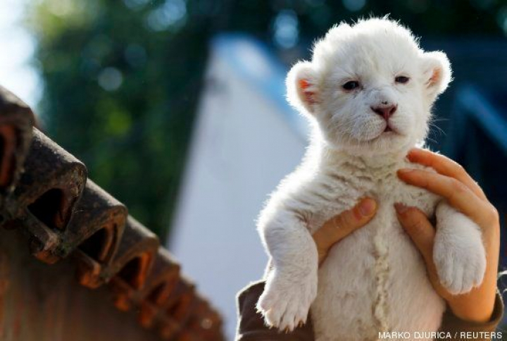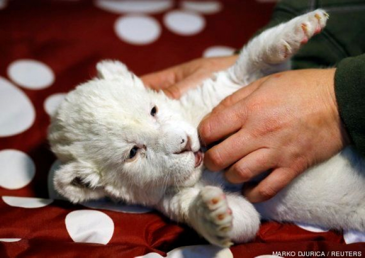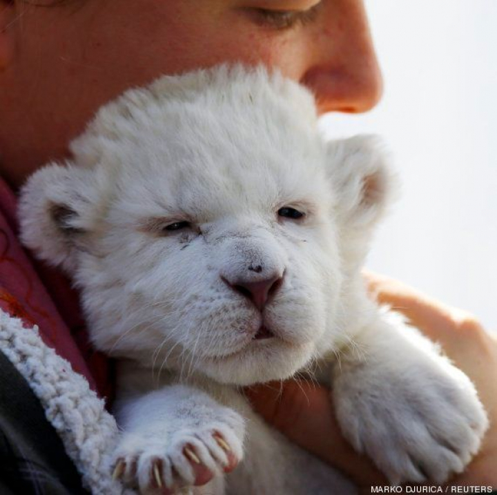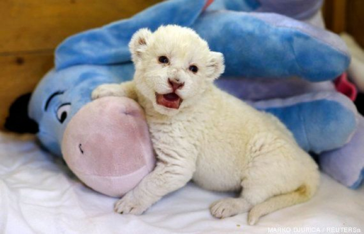 Esta cachorrita de león blanco es la nueva atracción del zoo de Belgrado. Sus cuidadores han grabado sus primeros intentos para aprender a rugir, aunque de momento su fiereza es similar a la del peluche con el que ha sido fotografiada.