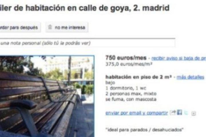 Idealista retira un anuncio que intentaba alquilar un banco de la calle por 750 euros