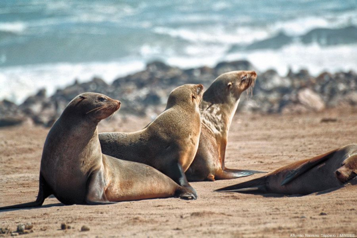 Dentro del Parque Nacional Costa Oeste está Cape Cross, una colonia de leones marinos en plena libertad. Alfonso nos cuenta más de este poblado de mamíferos marinos. “Superado el impacto inicial que supone respirar el fétido olor que desprenden los excrementos de tanto lobo marino allí concentrado, paseamos por la colonia observando cómo algunos pequeños emiten estridentes balidos llamando a sus madres, otros se afanan en amamantarse hasta quedar saciados, algunas madres al borde de un ataque de nervios regresan a la costa tras alimentarse e intentan localizar a sus crías en medio del aparente caos que reina en la colonia, los grandes machos se pavonean (...)”, comenta Navarro.