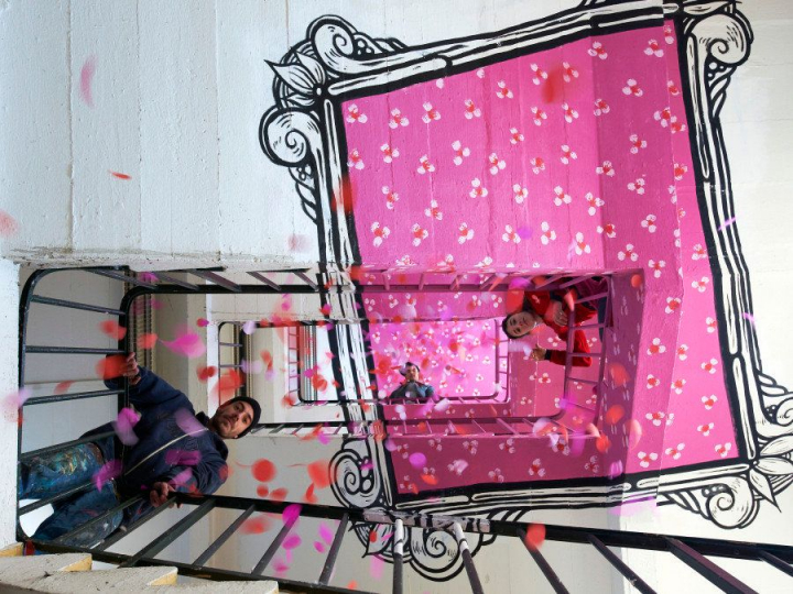 El mejor lienzo en blanco puede ser un edificio abandonado. Lo demuestran Ella & Pitr, franceses y residentes en Saint-Étienne. Utilizan espacios de edificios abandonados para crear ilusiones ópticas en tres dimensiones, combinando la pintura con las estructuras de los edificios.