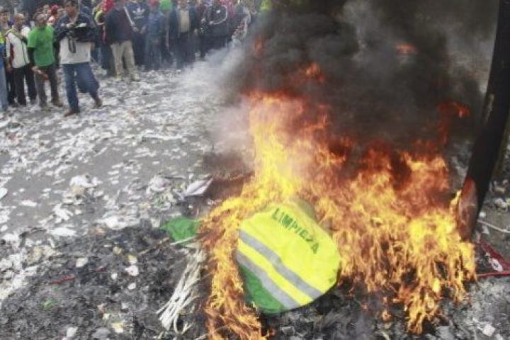Los barrenderos y jardineros de la ciudad han prendido fuego a sus uniformes para mostrar su descontento con la nueva gestión del servicio.