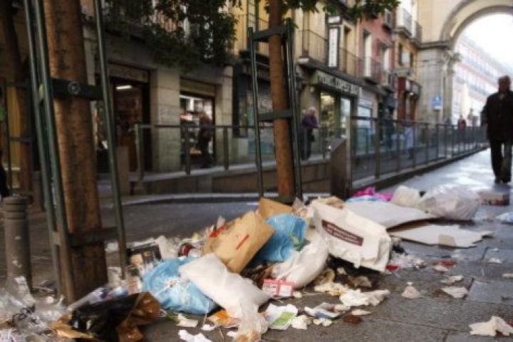 Madrid está sucia. Los desperdicios se acumulan por las calles causando la indignación de los vecinos y asombrando a los turistas que se toman un 'relaxing café con leche' en la Plaza Mayor rodeados de basura.
