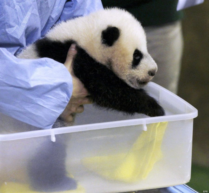 A las 03:45 horas de la madrugada del 30 de agosto, Hua Zui Ba, la hembra de panda gigante del Zoo Aquarium de Madrid, daba a luz tras 131 días de gestación a una diminuta cría de solo 210 gramos. Pero ya es un animalito de 4,166 kilos y ha pasado de ser una "pequeña salchichilla sin pelo" a un panda "chiquitín", como bromea Gustavo Fernández, uno de sus cuidadores, en la presentación a los medios de comunicación de la nueva estrella madrileña.