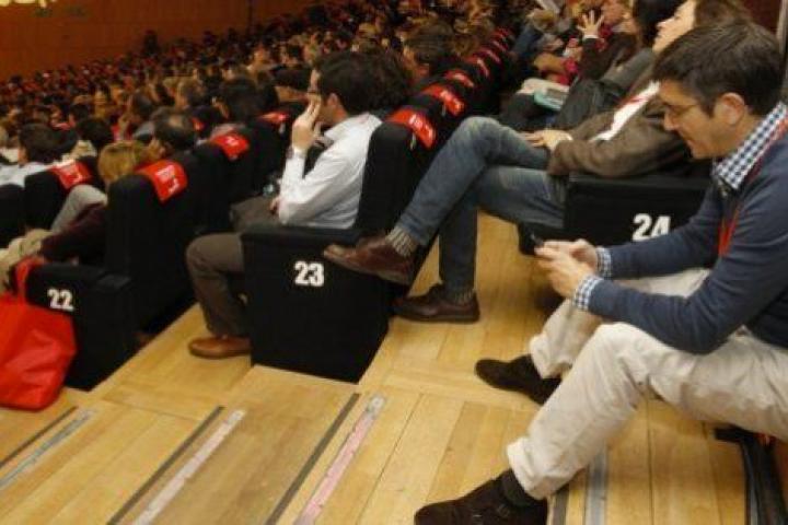 Patxi López y Madina, de los más buscados, se han comido un bocata de pie, en la cafetería, junto a militantes de base y periodistas. A Rubalcaba no se le ha visto el pelo salvo por el plasma, cuando asistió a las conferencias en el plenario. El resto del tiempo, los periodistas han podido ver imágenes suyas en vídeo y desde la sala de prensa. Se ha reunido con Felipe González o con José Luis Rodríguez Zapatero. De lo que hablaron, todavía no se sabe nada (pero sonreían mucho).