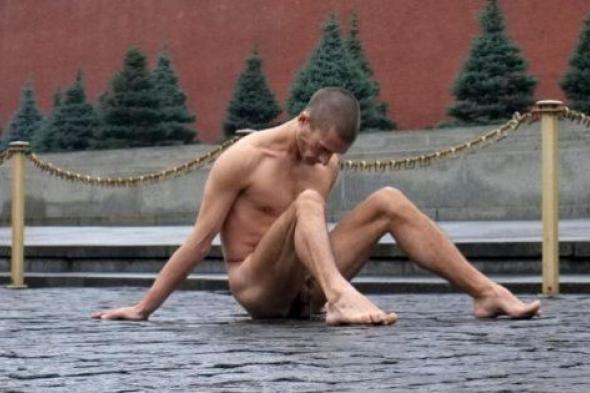 Hospitalizado tras clavarse los testículos con un martillo en la Plaza Roja de Moscú como protesta (FOTOS)