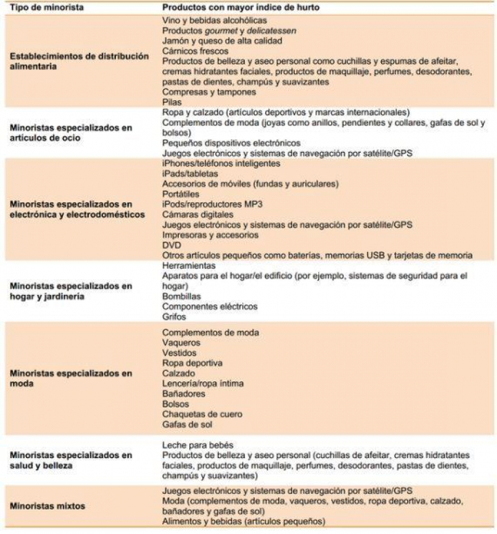 Esta tabla del barómetro recoge cuáles son los productos con mayor índice de hurto: