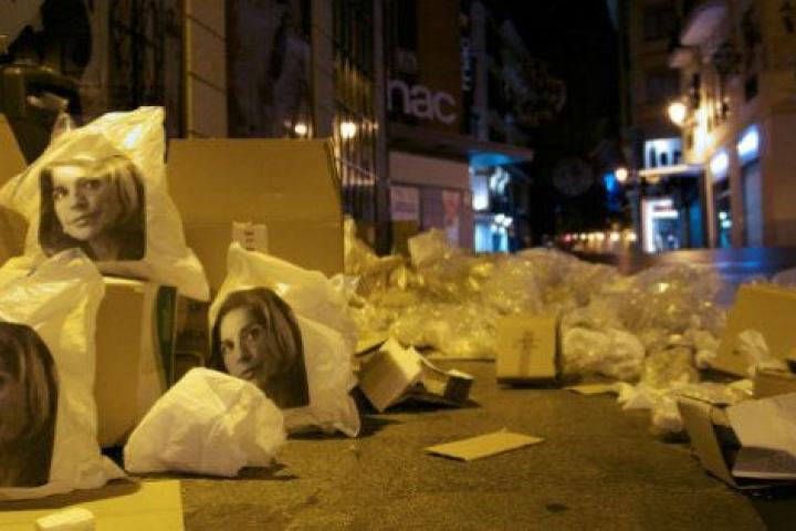 Si en un paseo por el centro de Madrid has visto en una de las muchas bolsas de basura que reposan en las aceras la cara de Ana Botella no fue una aparición mística ni una ilusión óptica: se trata de la última acción del grupo de arte urbano Ana Botella Crew, realizada en la noche del 12 al 13 de noviembre.