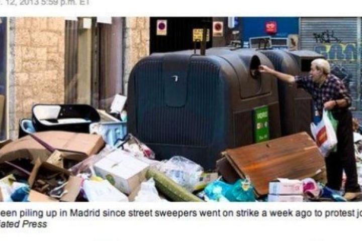 El Wall Street Journal también hace referencia a las dificultades financieras de Madrid y a los recortes y asegura que "los elegantes bulevares de la capital están cubiertos de basura y contenedores quemados".