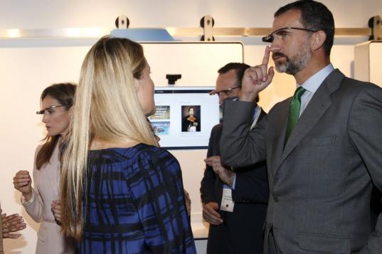 En Google, Felipe y Letizia se han probado las gafas inteligentes de Google. Las Google Glass tiene una cámara integrada y una pantalla del tamaño de un sello, justo por encima de la línea de visión del ojo derecho, en la que se proyectan contenidos, y también cuenta con micrófono y altavoz. Se manejan a través de movimientos de cabeza.