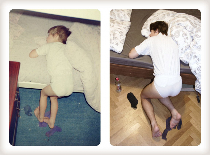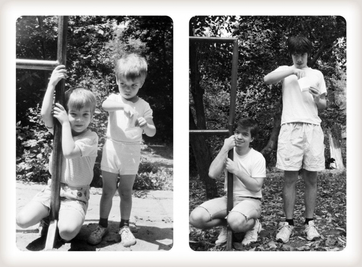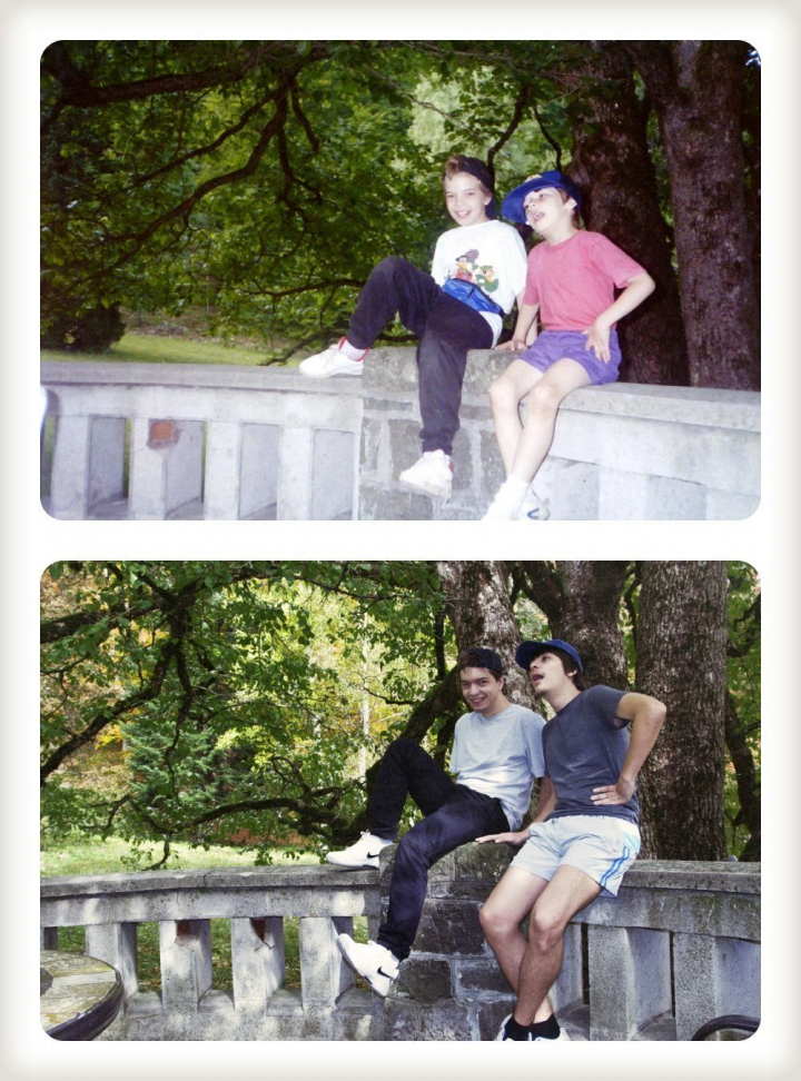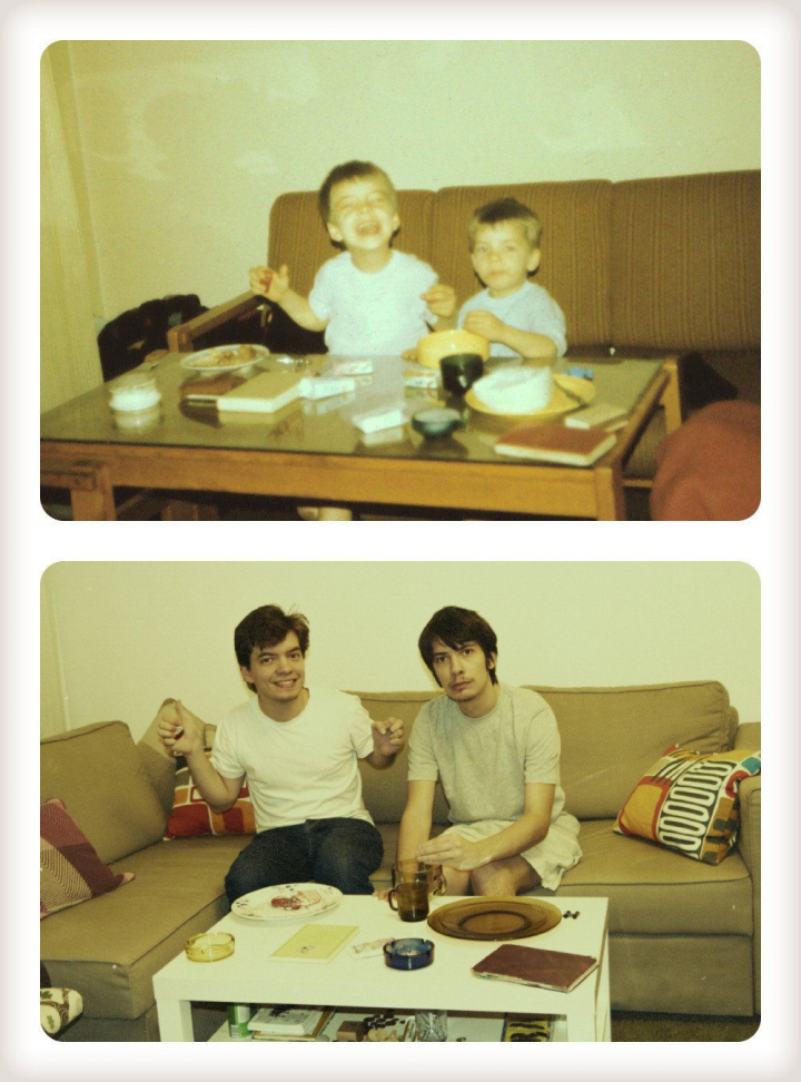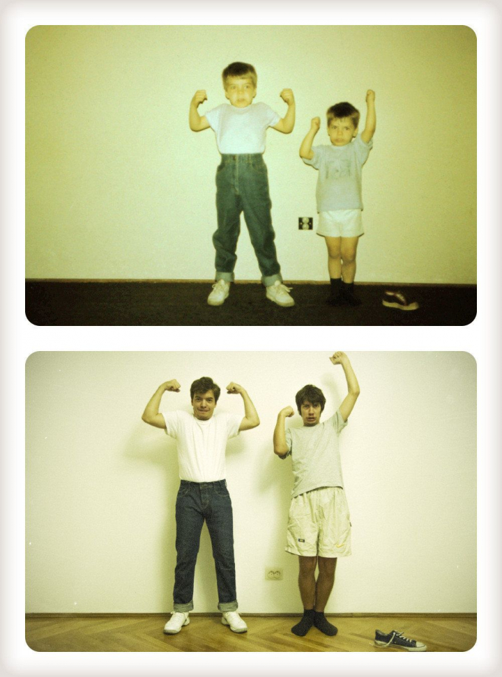 Aunque a veces repetir una fotografía de cuando eras niño con la misma pose sólo sirva para fomentar la vergüenza ajena, estos hermanos han conseguido darle un toque divertido y emotivo.