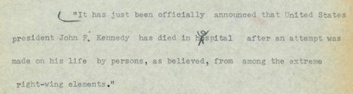 El periodista de la CBS Walter Cronkite corrió el riesgo de dar por muerto al presidente antes de la confirmación oficial. "Sólo tenemos la información de nuestro corresponsal en Dallas, que ha confirmado que el presidente Kennedy ha muerto. Pero no hay una confirmación oficial", dijo.