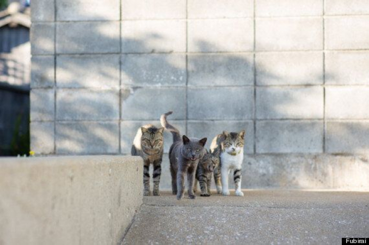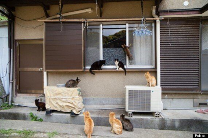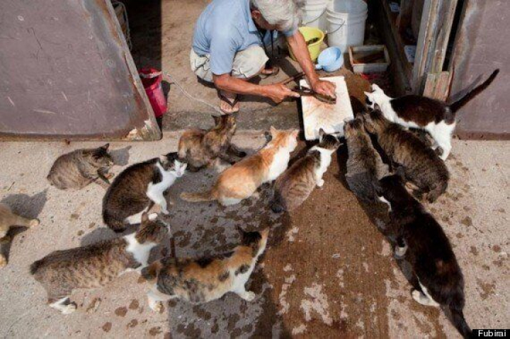 Cerca de 100 personas viven en la isla. Cuidan de los gatos, que hace mucho tiempo que les superan en número, porque creen que alimentarlos les traerá buena suerte y riqueza.