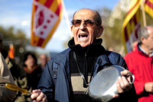 Gritos a favor de una nueva huelga general y eslóganes como "Nos están hundiendo el país" o los ya habituales "No es una crisis es una estafa" y "No hay pan para tantos chorizos" han sido coreados por los participantes, muchos de ellos miembros de los sindicatos, vecinos de barrios barceloneses y yayoflautas y grupos de pensionistas que protestaban por la caída de su poder adquisitivo.