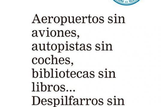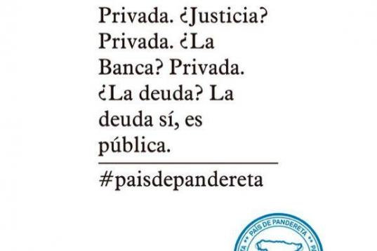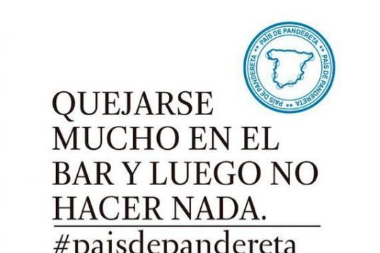 También han creado un cuño de 'País de pandereta' ( puedes bajarte el archivo aquí) para sobreimprimir en imágenes: en sus ejemplos, Bárcenas, Bankia o las colas del paro. Además ha creado "frases de País de Pandereta". Puedes verlas en esta galería, de su blog en Verkami: