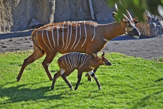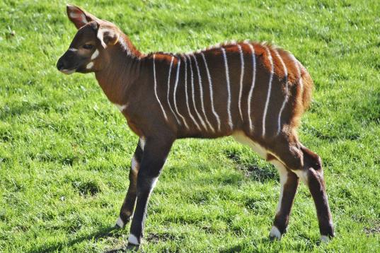 El bongo oriental (Tragelaphus euryceros isaaci) es una subespecie considerada “en peligro crítico”. Las poblaciones de este antílope en zoológicos europeos y norteamericanos es de unos 500 ejemplares. Las marcas de su pelaje con un excelente camuflaje en bosques.