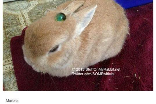 Fotos de alguien que se dedica a poner cosas encima de su conejo: stuffonmyrabbit.net