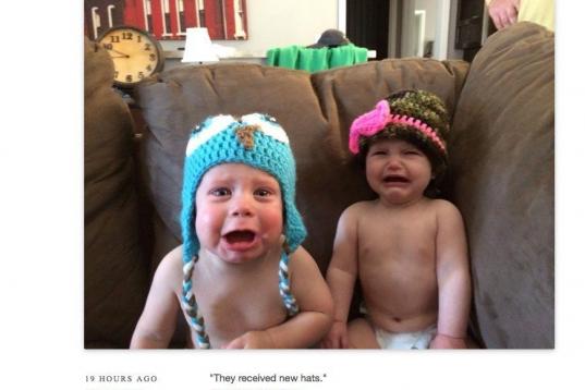 Hay para todos los gustos: desde gatos muy monos -sustituyendo a pelotas o a ramos de novias- a selfies (autofotos) en funerales, pasando por niños llorando por razones insospechadas o Tumblr tan literales como "cosas que pongo sobre la cabeza de mi conejo" .
