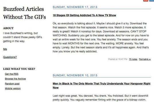 Hay listas de lo mejor del año que dan para un buen rato de diversión. El ejemplo es la de los Tumblr más virales de 2013 , con lo que ha triunfado en esta plataforma que compró en mayo Yahoo! por más de 850 millones de euros .