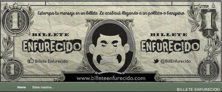 Tomando ejemplo de iniciativas de activismo en billetes como escribirHazte donante de médula ósea o lemas como Toma la calle, un grupo de estudiantes de Publicidad de la Universidad de Málaga ha comenzado a pagar con Billetes enfurecidos. Su lema: "Estampa tu mensaje en un billete. Le acabará llegando a un político o banquero".