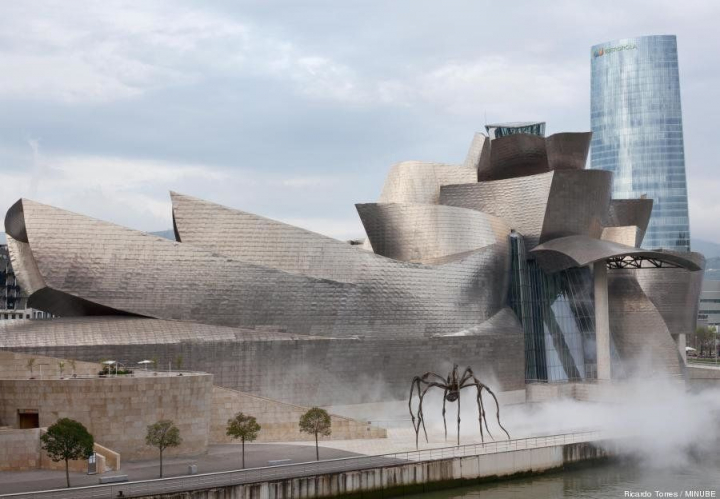 El Guggenheim de Bilbao, diseñado por Frank Gehry, es, junto con su perro y araña gigantes del exterior, el gran símbolo de la modernidad y el arte en la ciudad vasca desde el año 1997. Perteneciente a la Fundación Guggenheim, sorprende al visitante tanto por fuera como por dentro. En su interior alberga reconocidas obras de arte contemporáneo.
