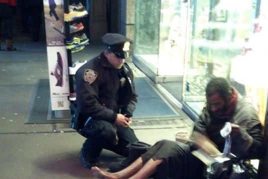 Jennifer Foster, policía, estaba de visita en Nueva York con su novio cuando. Cuando iba a acercarse a dar unas monedas a este hombre descalzo en Times Square vio a un oficial de policía, Larry DePrimo, acercarse al hombre con un par de botas....
