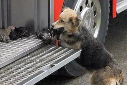 Un perro salvo a sus crías de diez días de una casa en llamas Temuco, Chile. Sólo una no sobrevivió.